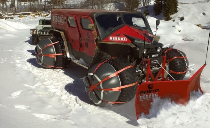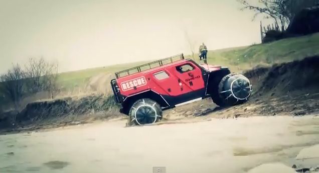 The Ghe-o Rescue is a Romanian vehicle of Ghe-o Motors, which can move in any kind of terrain . The vehicle is designed to be used by medical and fire services , and can be modified for military use. It can travel on snow since it has special air cushions that allow it even to float on water .