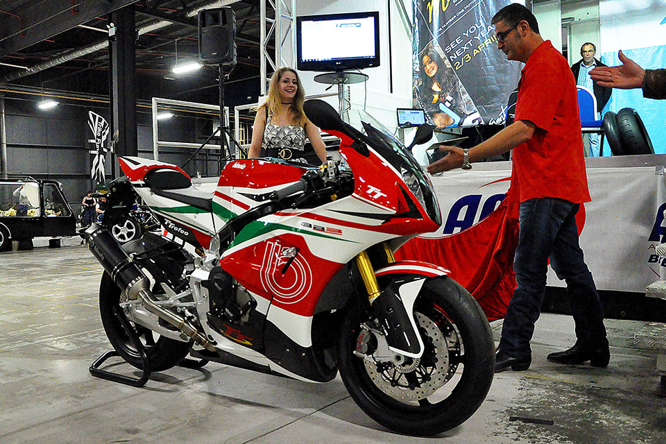 A special limited edition of the BB3, with the colors of the Italian flag was presented by Bimota at the Manchester Bike Show, to celebrate the company’s participation in the 2015 Isle of Man TT.