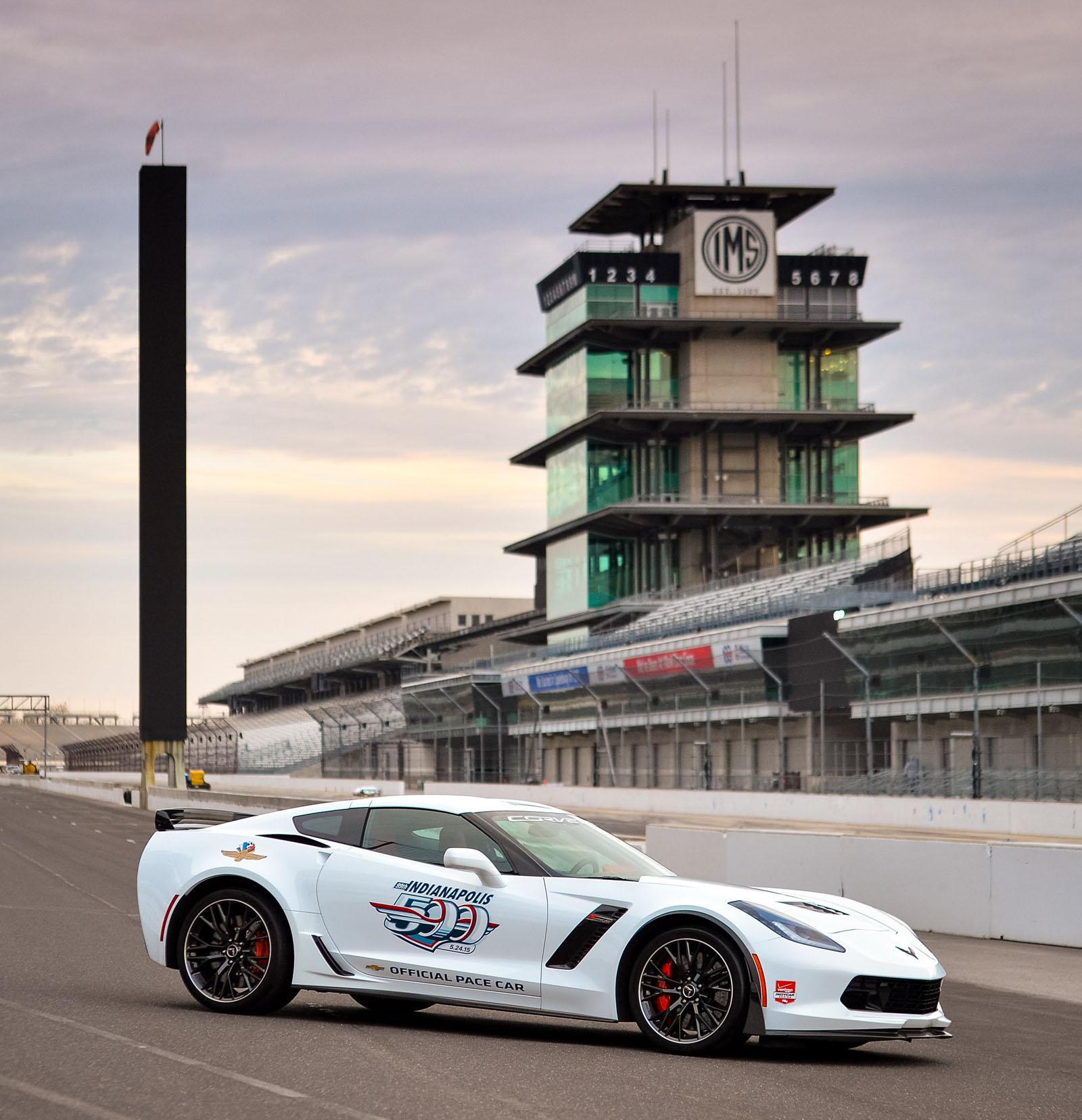 Chevrolet presented the Corvette Z06 that will become the official pace car for this year’s Indianapolis 500 race. The car will be driven by Jeff Gordon, it is painted in white, it has graphics and special lights on the roof.
