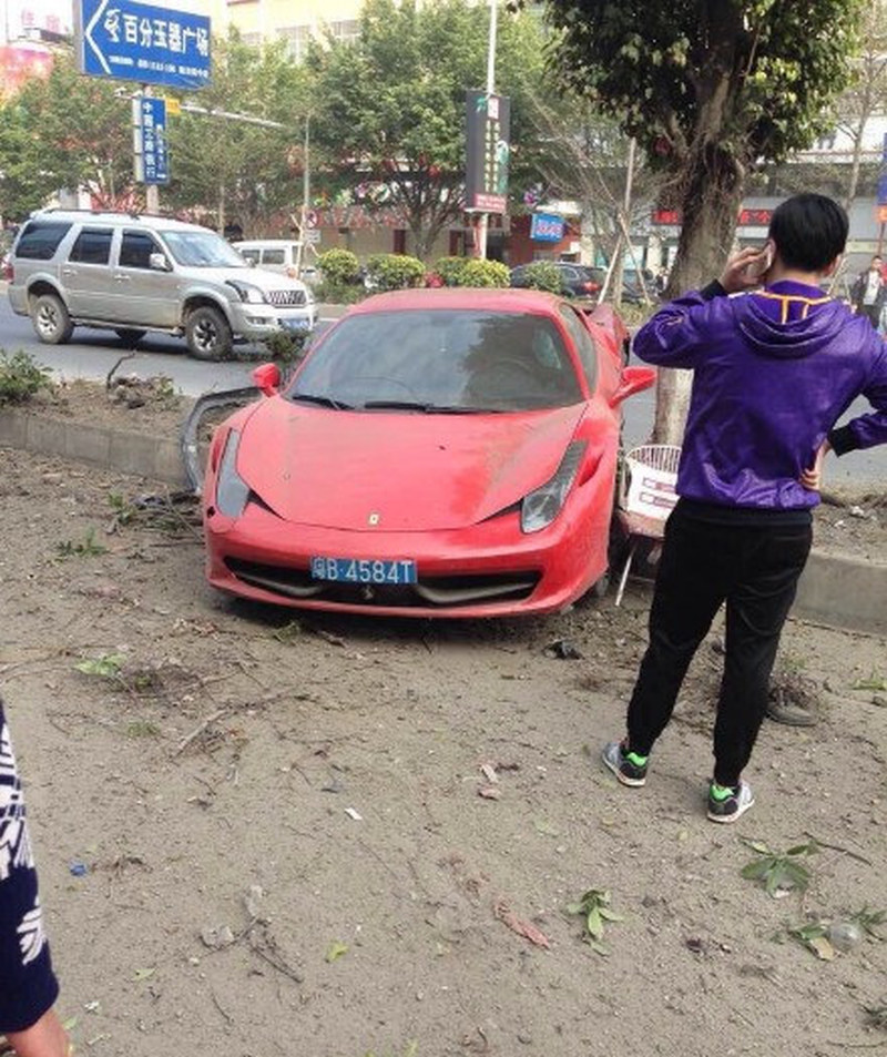 A Chinese driver of a Ferrari 458 Italia lost the control of his Italian supercar and crashed it on a tree .The incident occurred in the Guangdong province, with the Ferrari having some serious damage, such as evidenced by the photos, the damage is surely repairable, but the cost of the repairs will be high.
