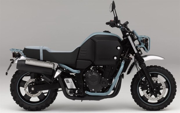 Honda presented the Bulldog 400 Concept at the Osaka Motorcycle show. The bike features small 15 inch wheels, equipped with knobby tires and a low center of gravity.
