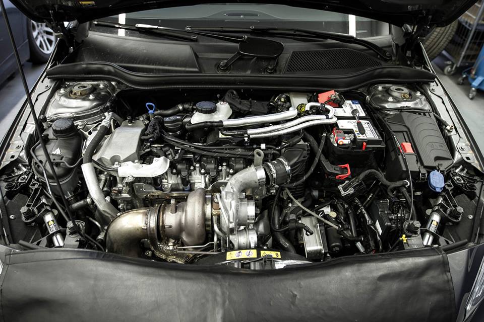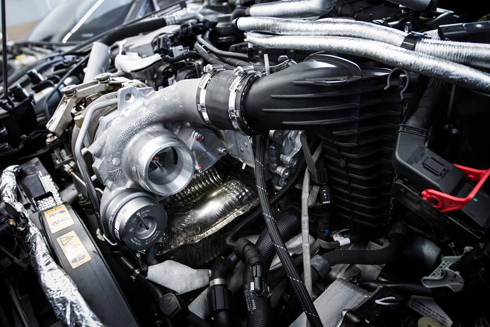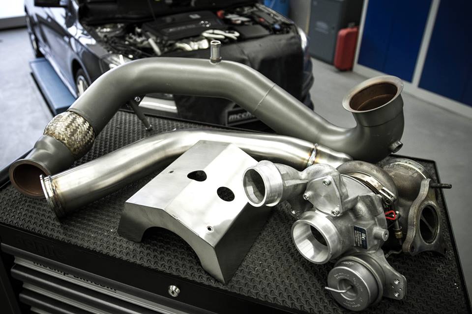 The kit features a ECU reprogramming, a new turbo, new exhaust without catalysts, a new downpipe, a new intercooler and a new oil cooler. The car also features new shocks and springs and bigger brakes.