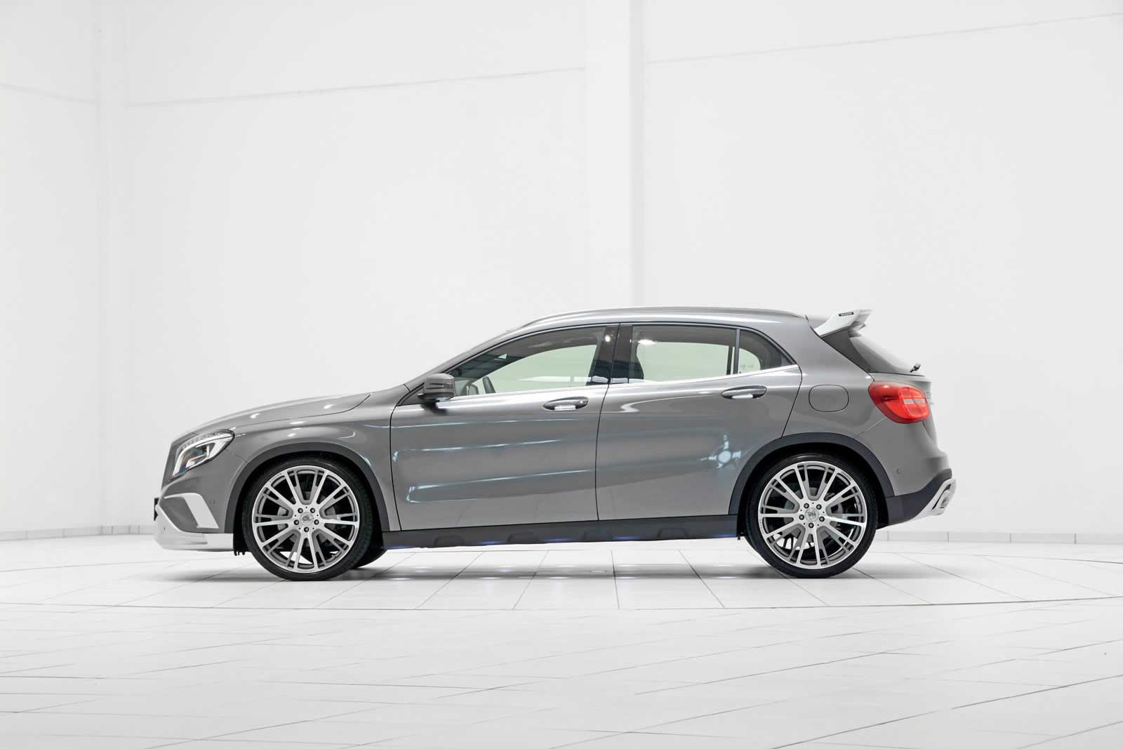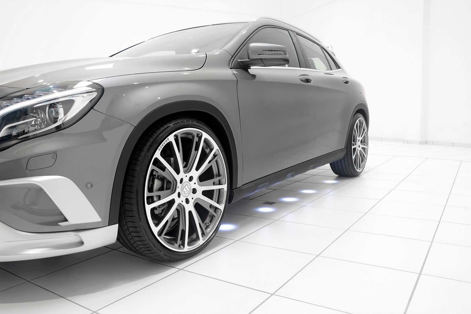 Brabus announced a tuning package for the Mercedes-Benz GLA. In design terms, the car has acquired a new front bumper, side sills with LED lights, a spoiler, new rear bumper, quad tailpipes , lower mounts by 25 mm dimensions and rims from 18 to 21 inches.  The interior features aluminum pedals, leather upholstery, aluminum handles, stainless steel door sills and Alcantara details.