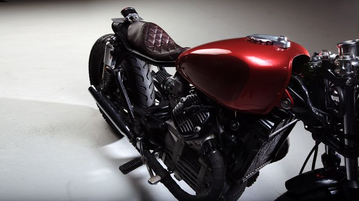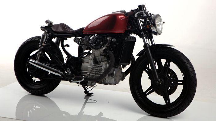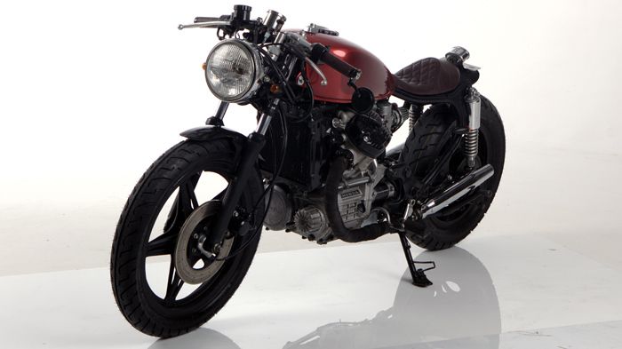 Triskelion Motors and Kyle Cannon have created a cafe racer motorcycle and they named it Old Red, based on a Honda CX 500.