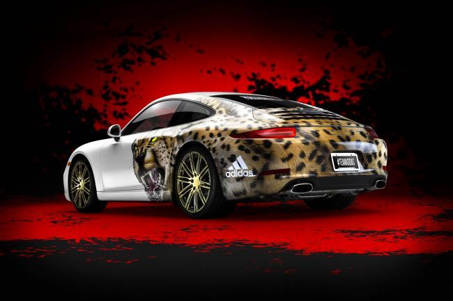 The Porsche 911 will be customized with graphics depicting a cheetah. In addition to receiving the car the three winners will sign a contract with Adidas.