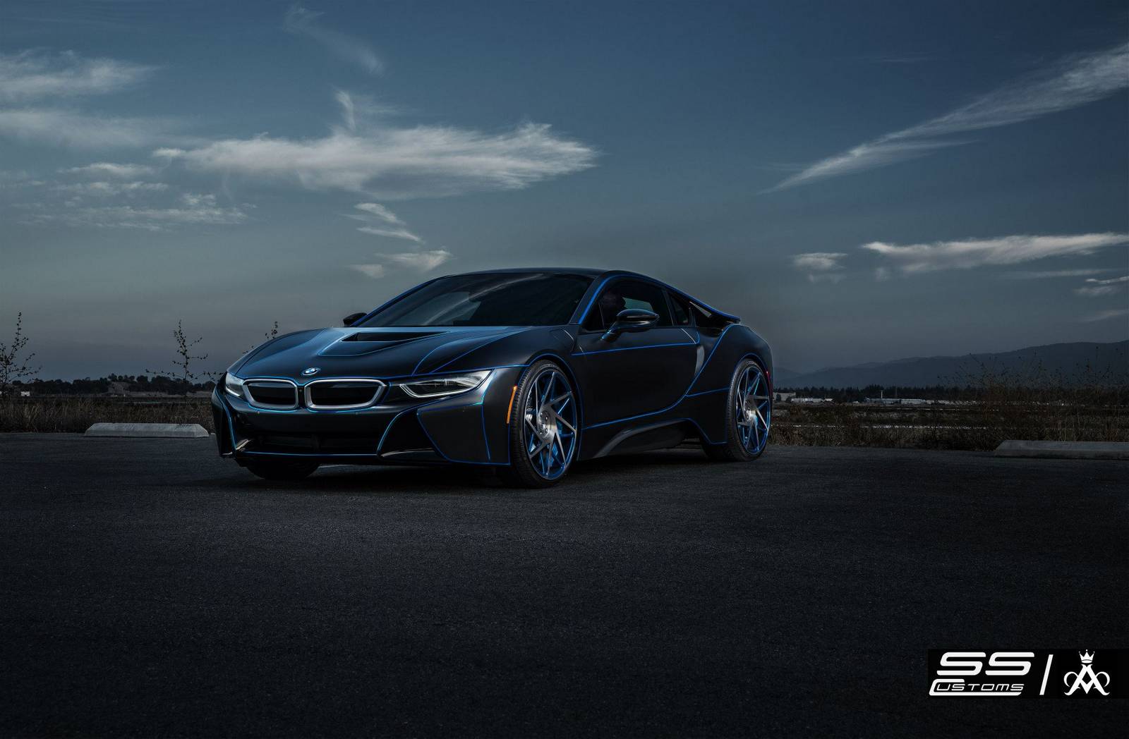 SS Customs presented a styling package for the BMW i8. The car is dressed in a black matt vinyl sticker, with blue chrome details on the bumpers, the radiator grille, the side skirts and the rear. The package is completed with 22 inch wheels.