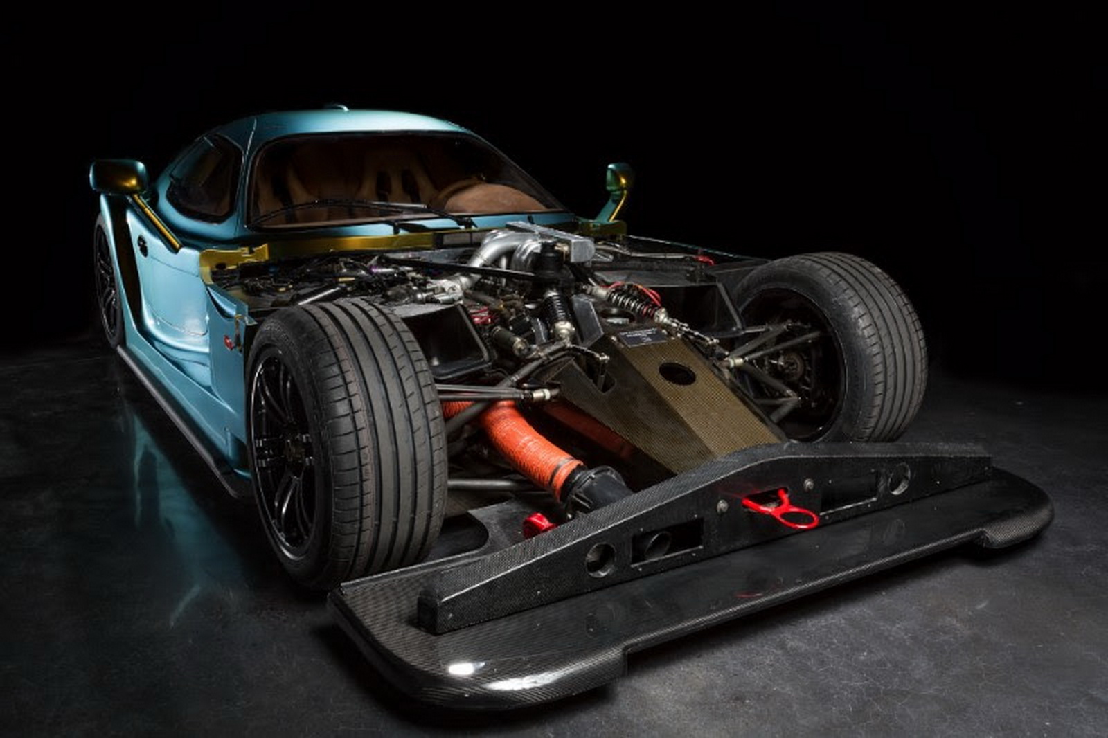 It is equipped with a 6 liter V8 engine producing over 600 hp and 678 Nm of torque, combined with a 6-speed manual gearbox of ZF, that transfers the power to the rear-wheels. The car without the engine weighs just 898 kilos.