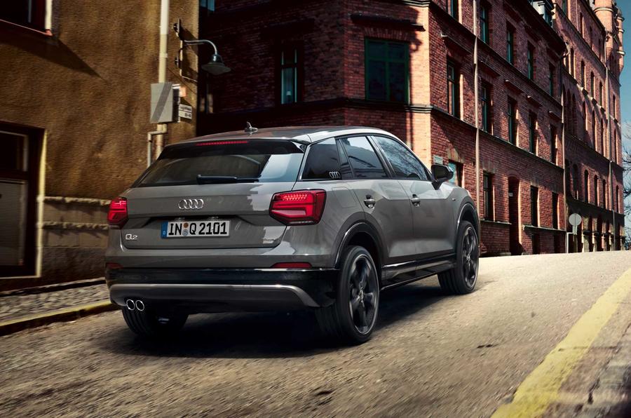 The interior of the Q2 Edition #1 has sports seats, a leather sports steering wheel, leather trim, aluminum sills, a gray roof lining and concealed lighting.
