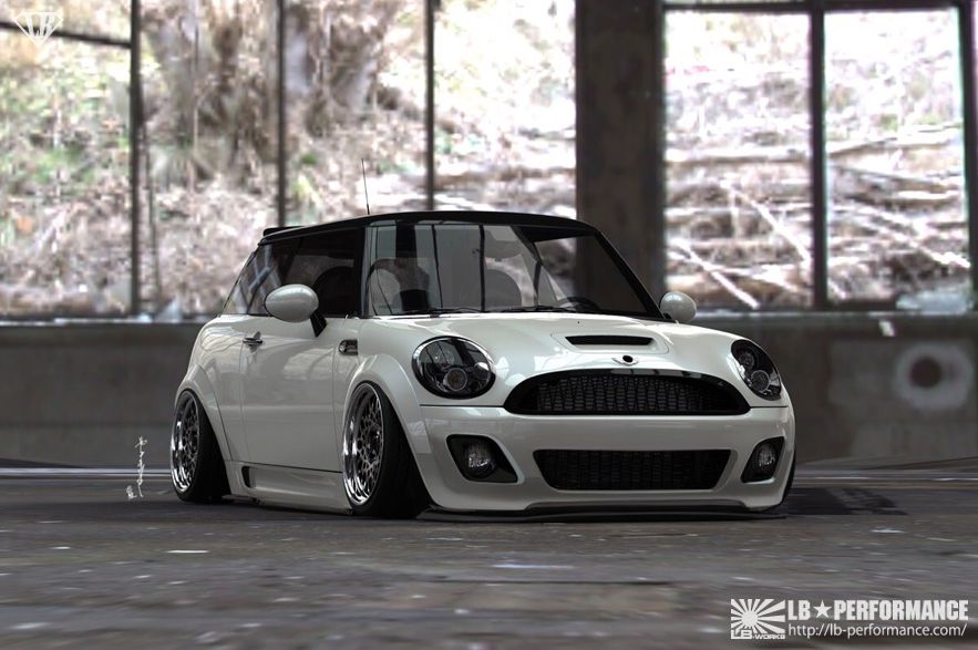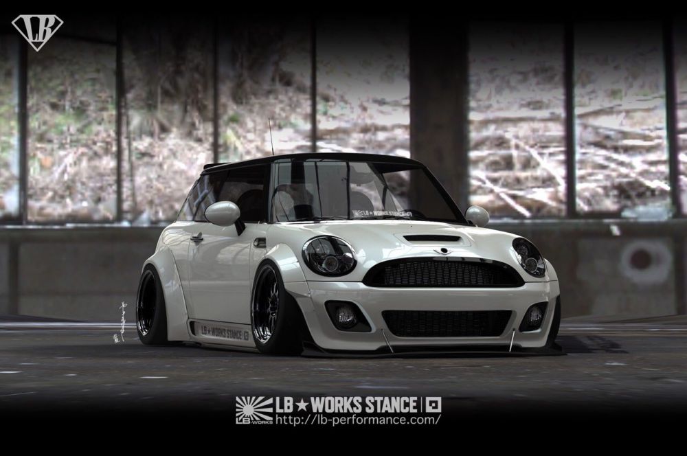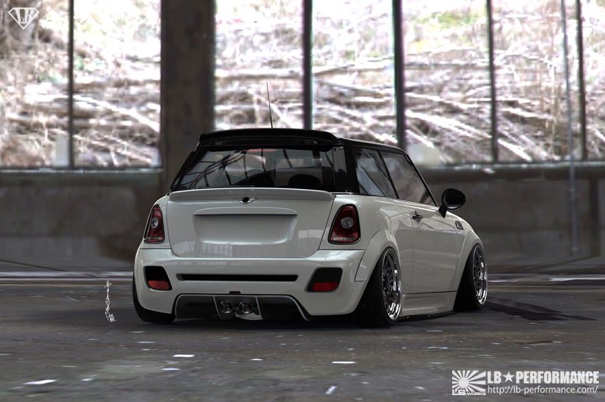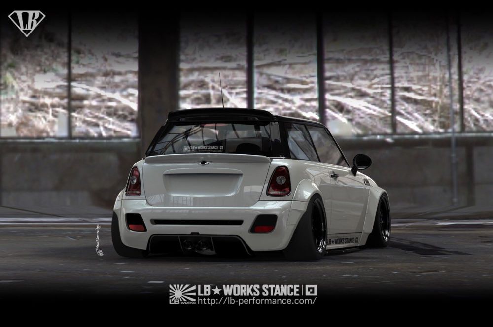 Liberty Walk has prepared a wide body kit for the MINI Cooper, which consists of new bumpers, fenders, side skirts, spoilers and a diffuser.