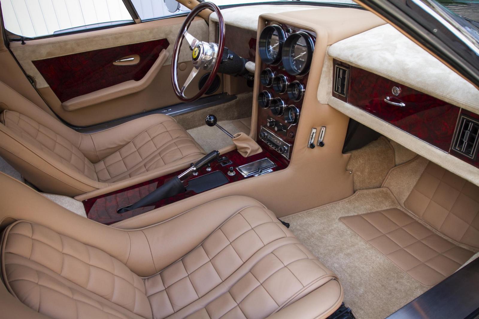 The unique 365 GTB/4 Daytona Shooting Brake is created by Panther Westwinds and although its design was and remains controversial, its interior is very luxurious featuring wood paneling and cream leather.